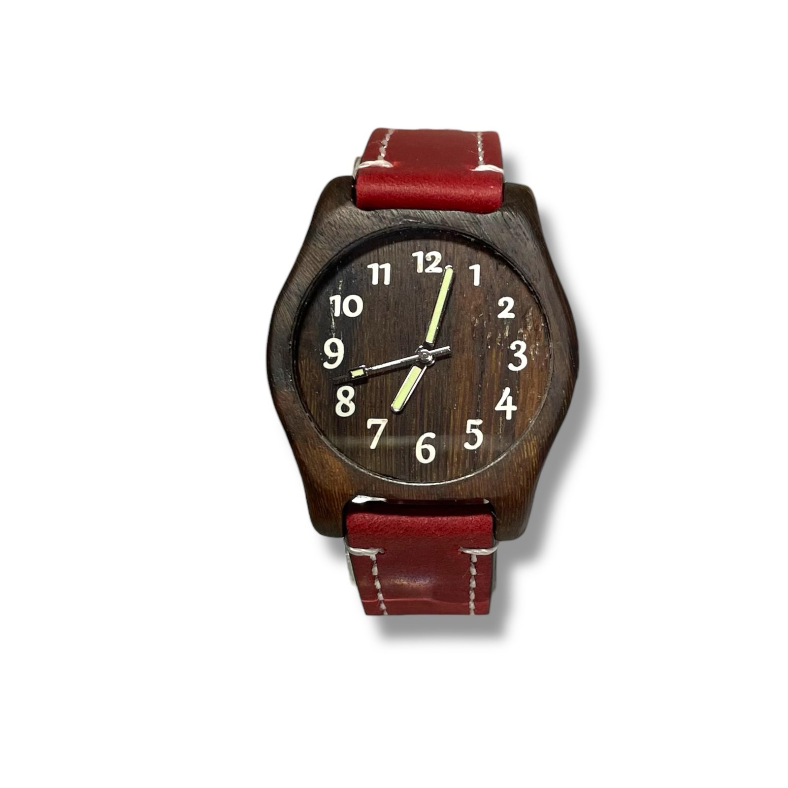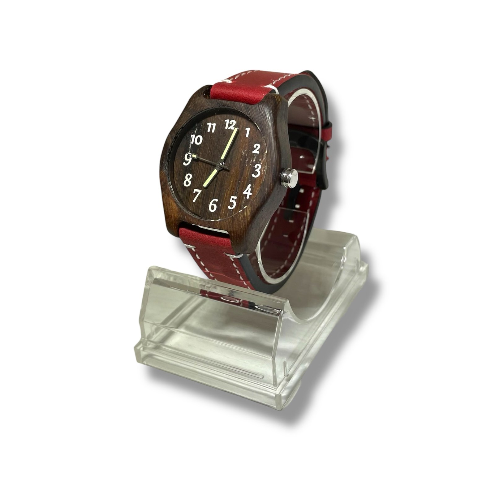 Ura iz lesa trte, z številkami bele barve ter rdečim paščkom.