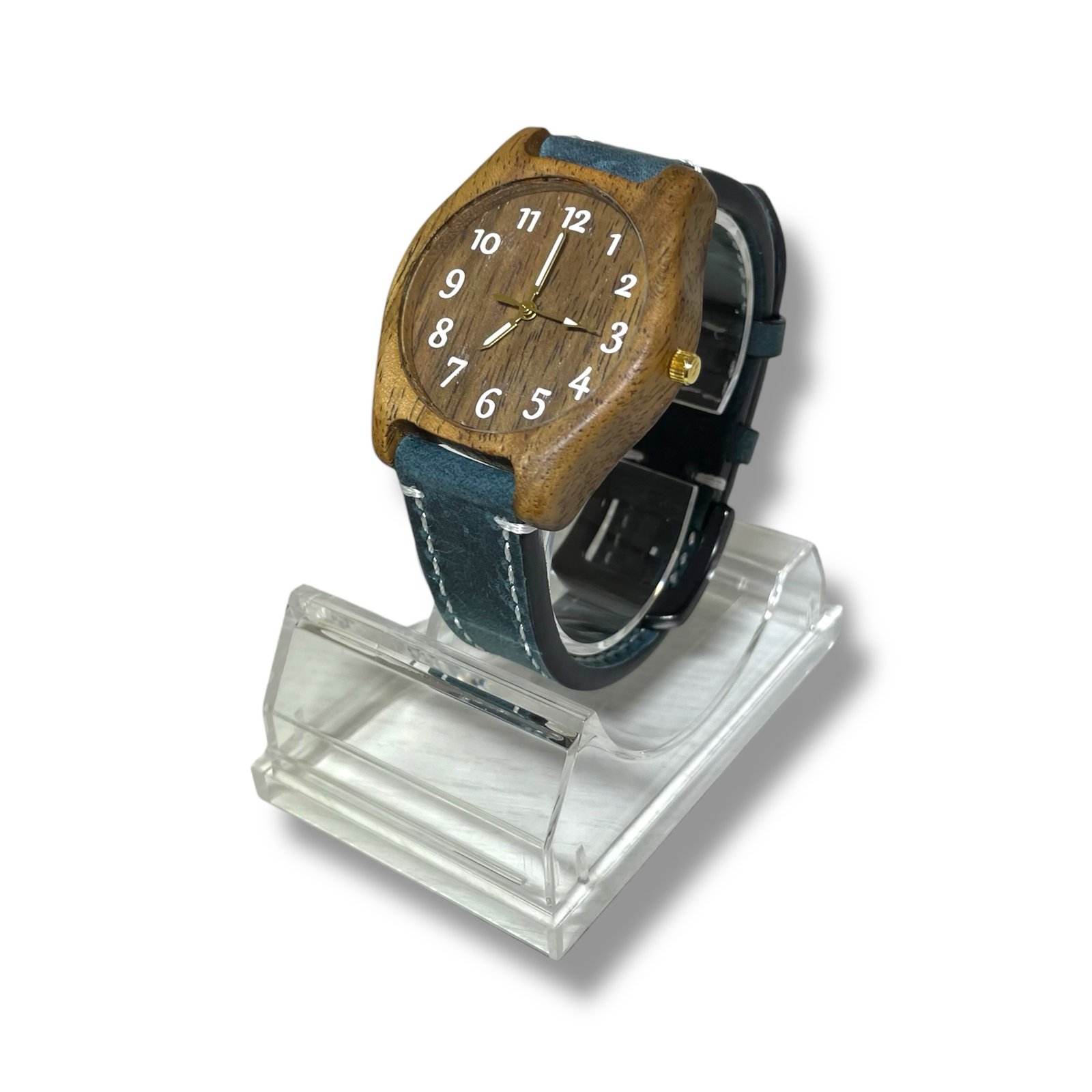 Ura iz lesa oreha, z številkami bele barve ter modrim paščkom.